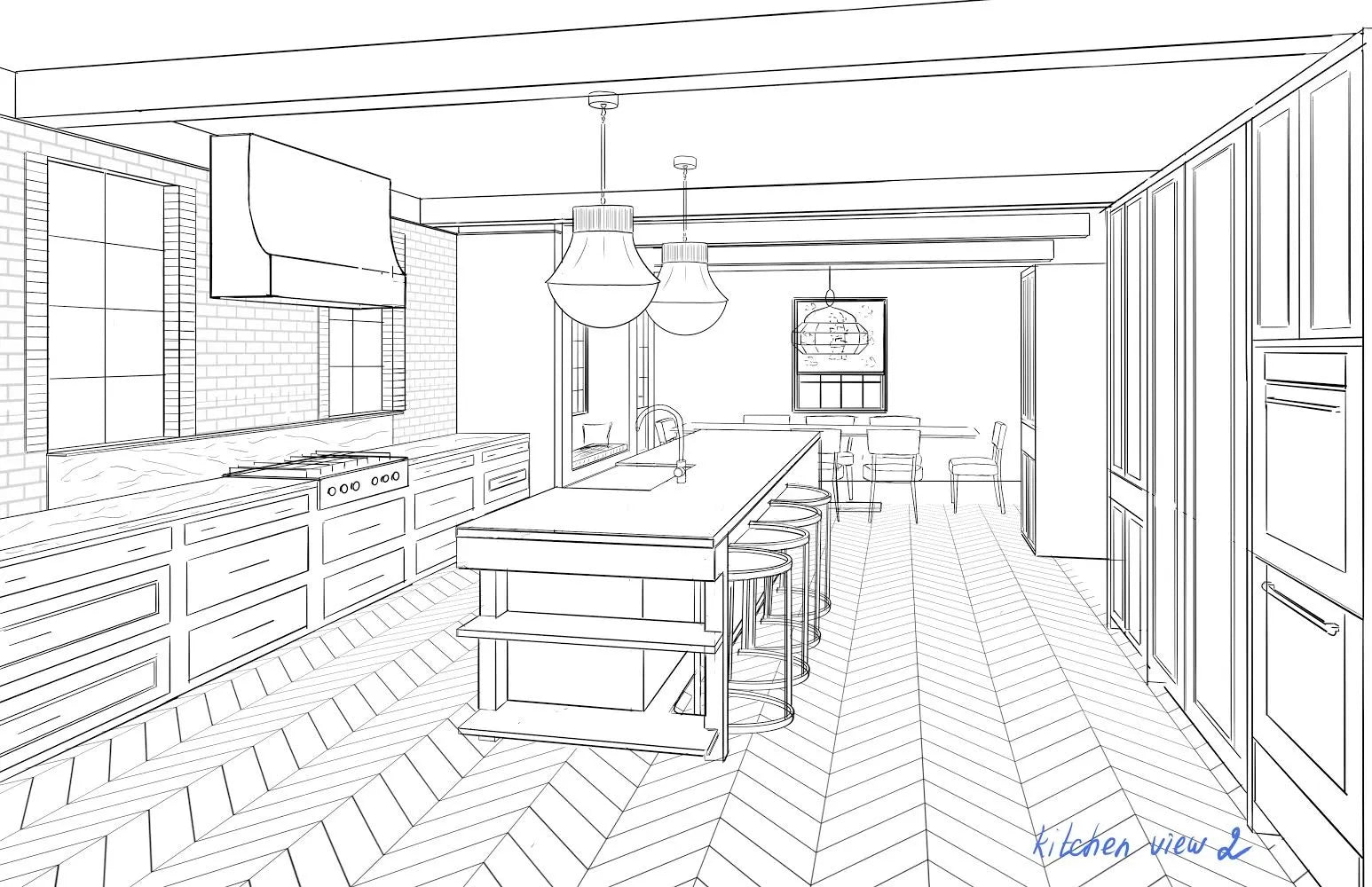 We wanted to renovate an old home to preserve the beauty and charm, and for the satisfaction of saving an old house. What started with ideas of knocking down a few walls to build a dream kitchen (see the rendering I had planned below) soon caused some sleepless nights once we saw what was behind those walls.