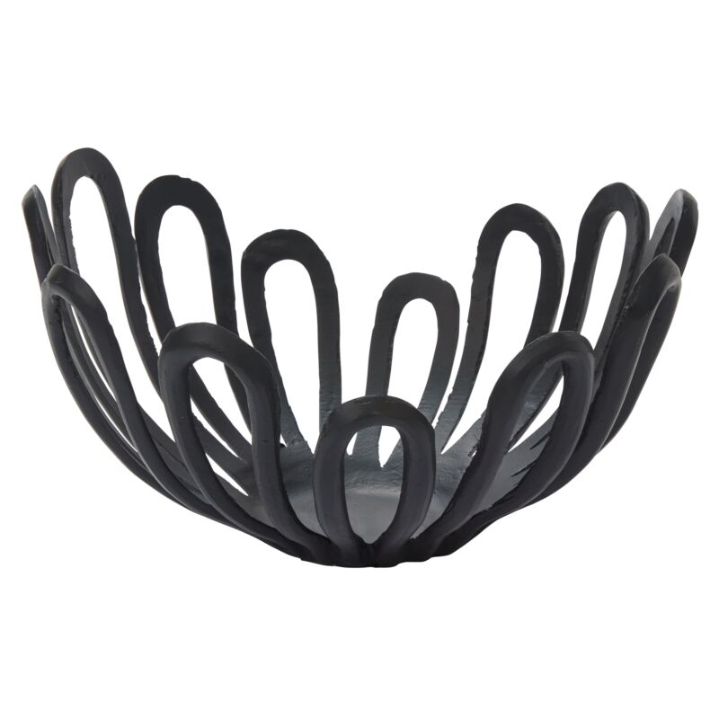 Give coffee table & shelf displays an upgrade with the sculptural form & stunning shape of the cast aluminum open decorative Altamonte Bowl in black. Large open petal shapes extend from the center base, curve upwards, & stop at varying heights. This versatile piece can be styled with fruit as kitchen decor, on its own as a decorative object, filled with a moss layer for an orchid or other planting, & much more.