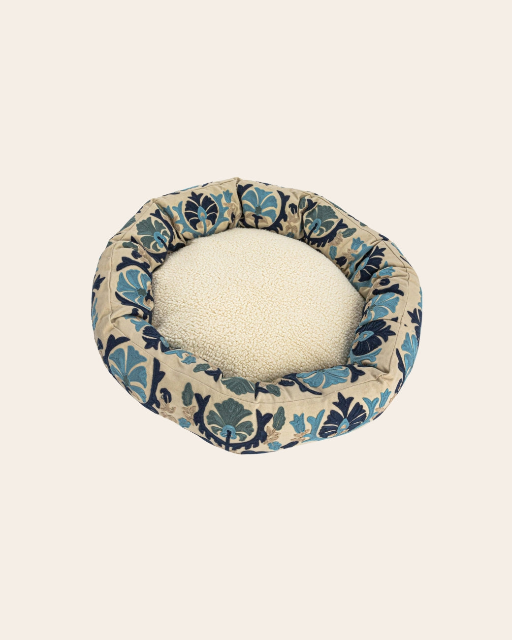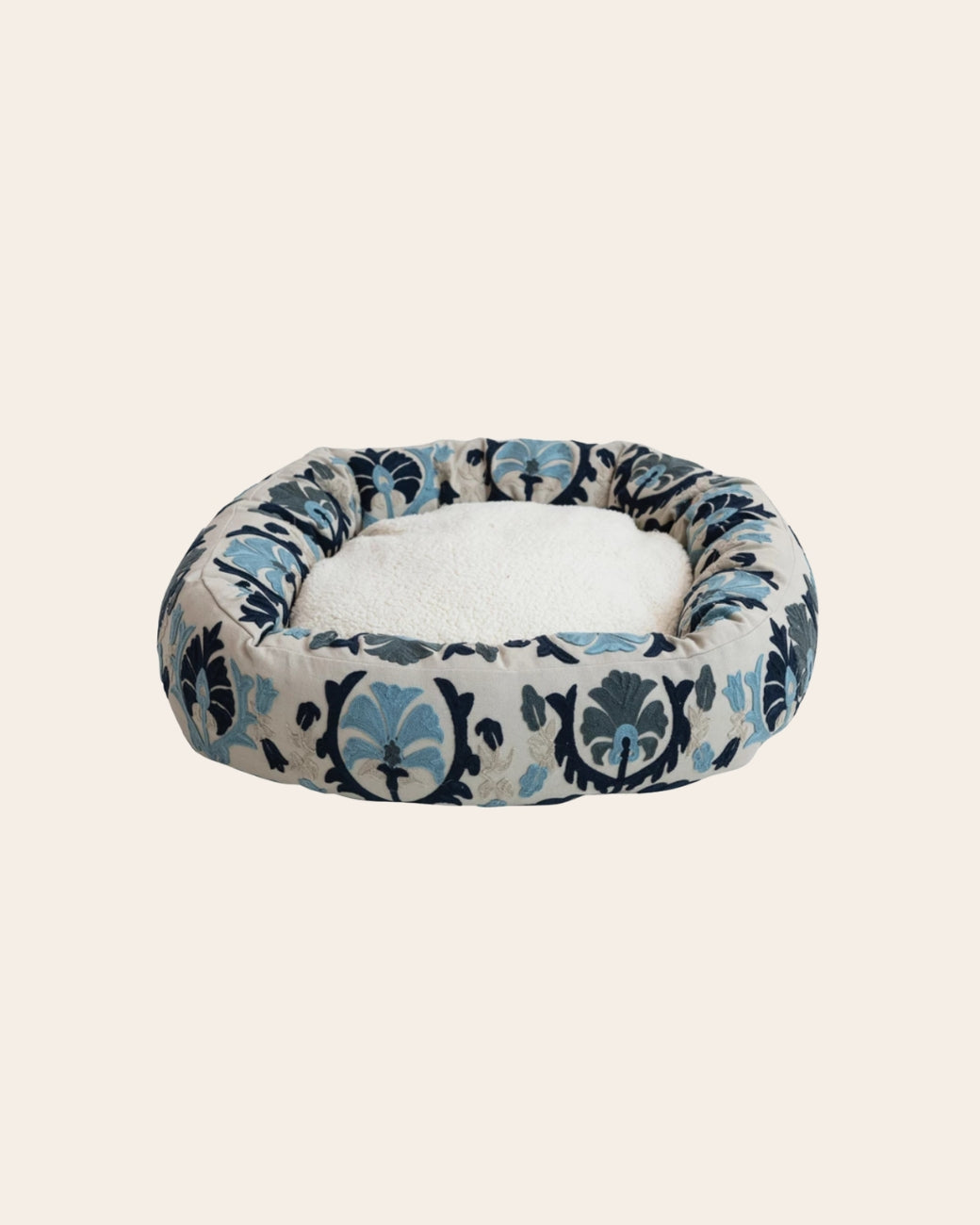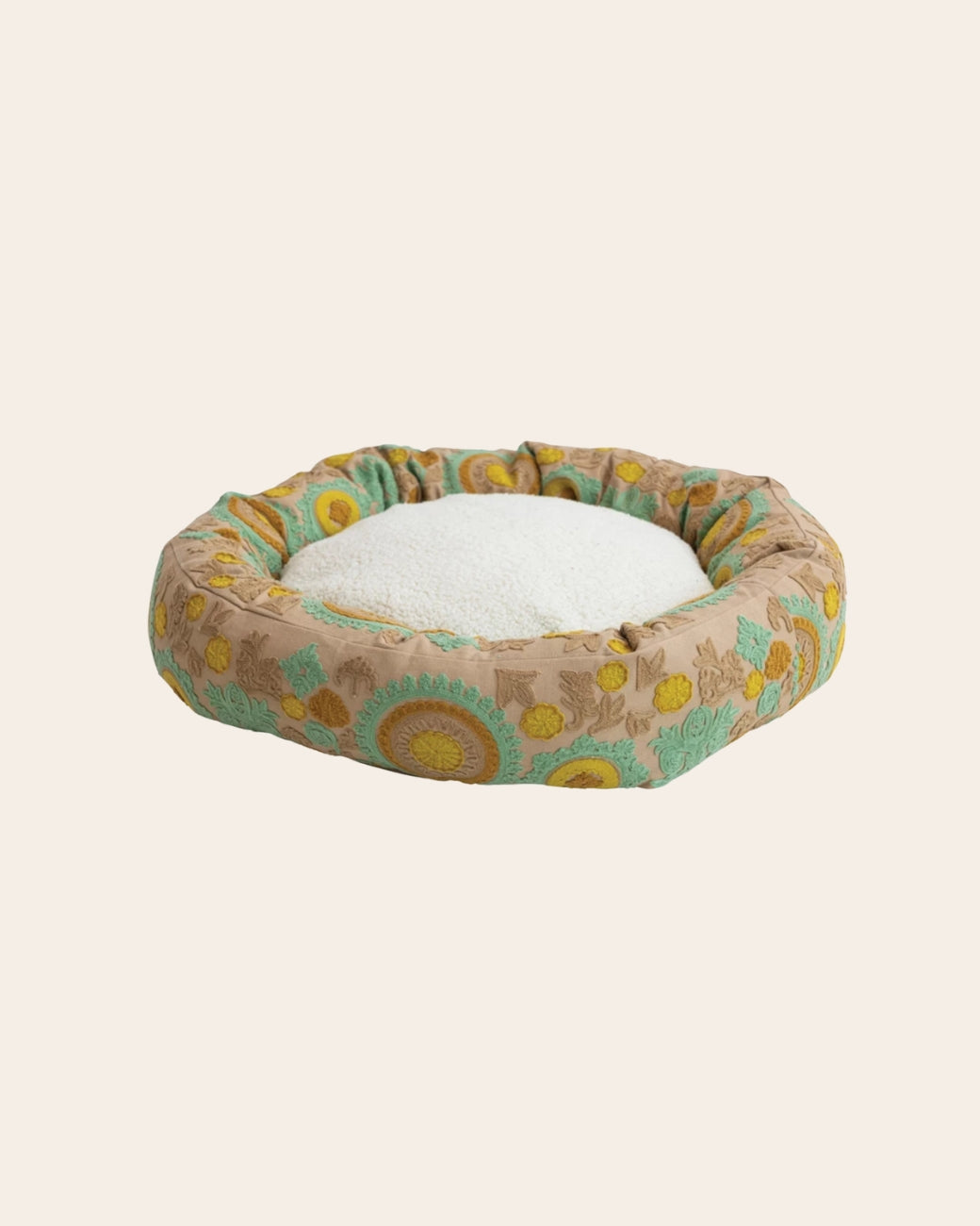 Cotton Embroidered & Sherpa Pet Bed w/ Washable Cover