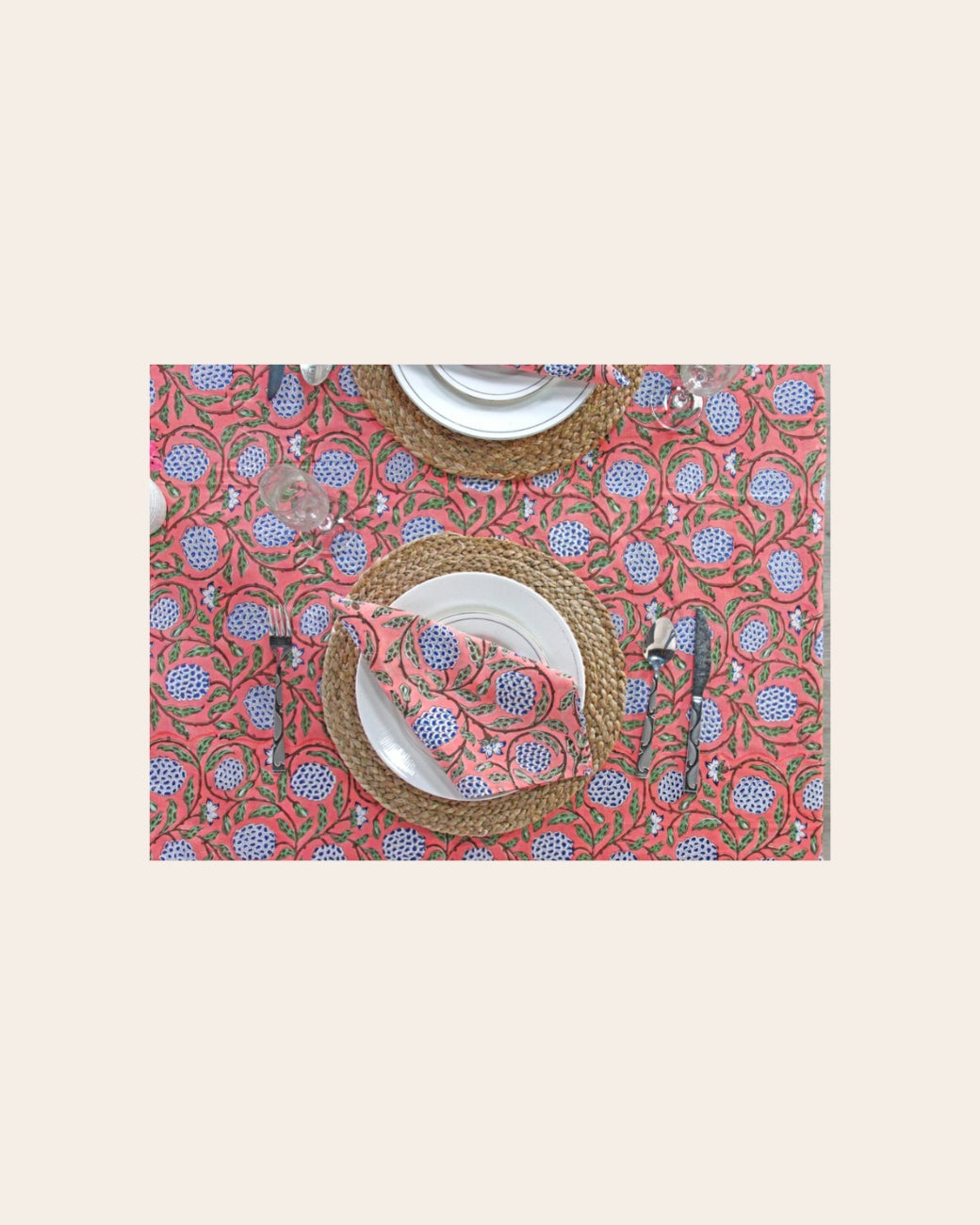 70 X 118 - A gorgeous tablecloth made with 100% cotton fabric is a must-have to enhance the decor and ambience of your dining table or side table. It features an elegant Indian Floral Block Print design in various colors and shades contrasting on a nice background with an extraordinary border pattern. This 100% cotton tablecloth is a perfect fit and an essential to complement the decor of your dining ensemble.