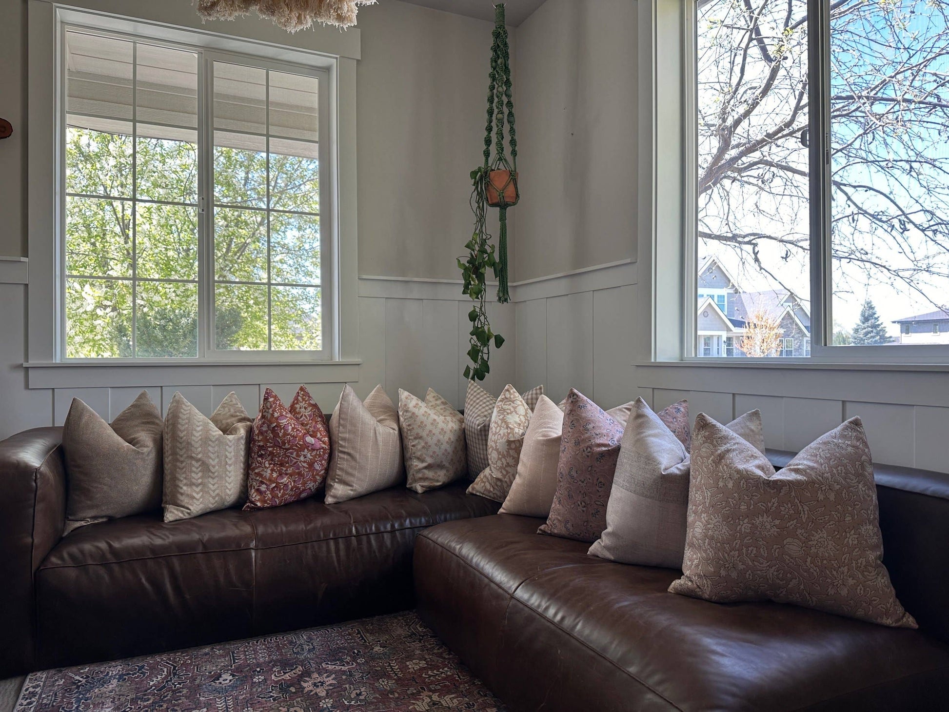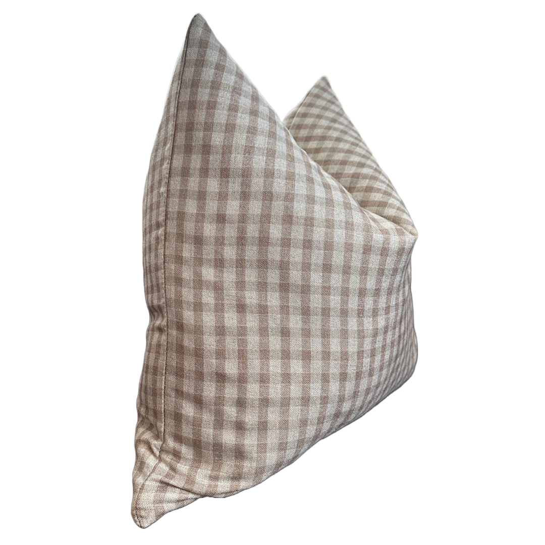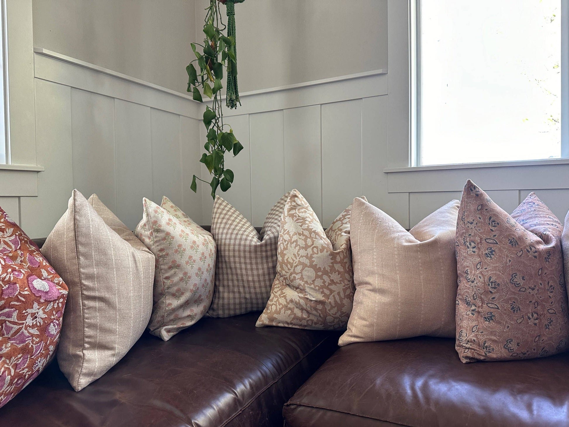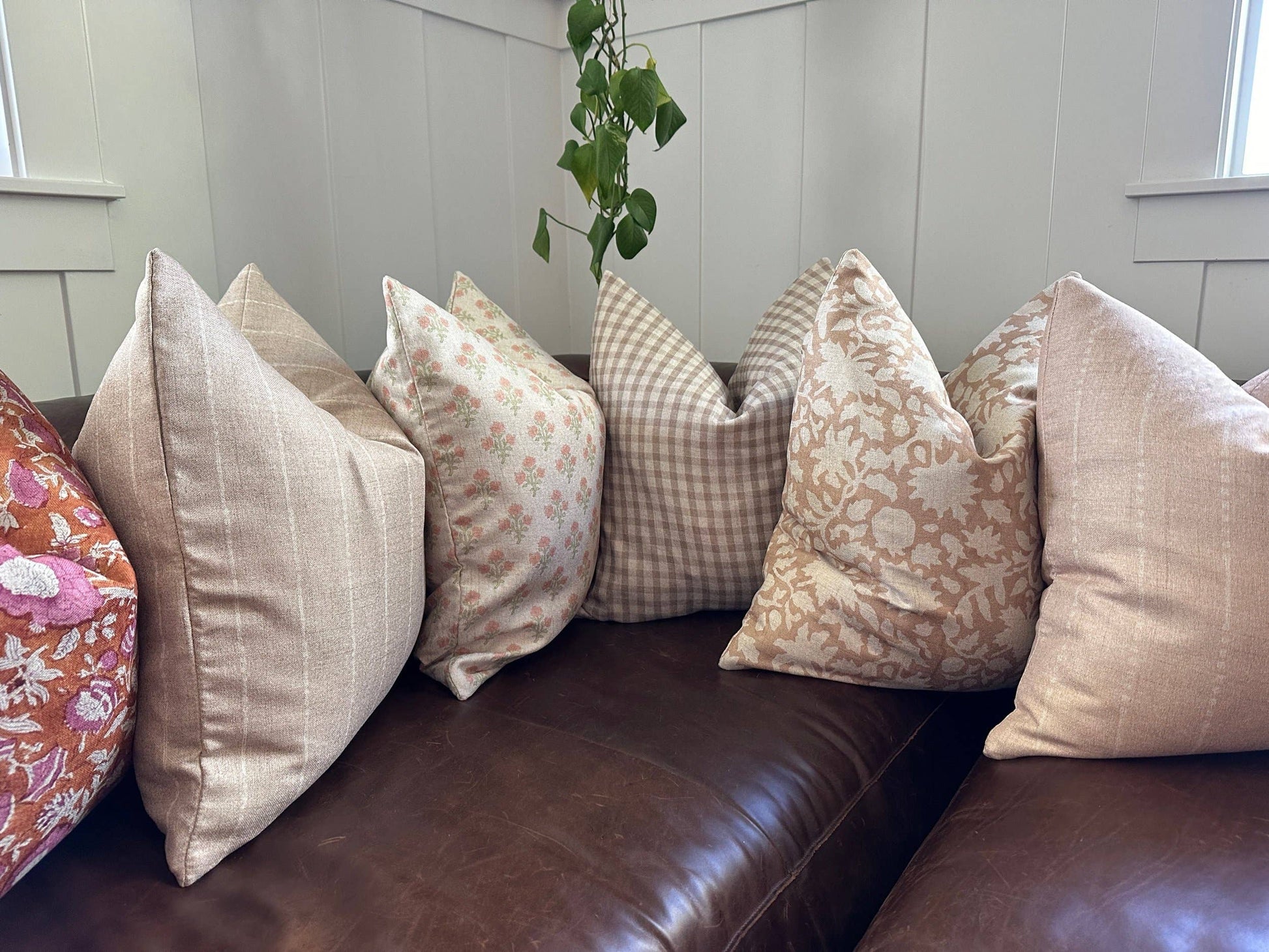 The Emerson pillow cover will add warmth and dimension to any living space featuring a beautiful woven fabric, that is still soft to the touch. The Emerson comes in sizes 22x22 inch square and 18x18 inch square and can be purchased with or without a feather pillow insert. We highly recommend our premium white goose down pillow inserts to give that high end look and feel! The fabric of the Emerson pillow cover is a polyester-linen blend, made of 85% polyester and 15% linen. It features print on both sides, has a hidden zipper, and can be machine washed. Please wash with cold water and lay flat to dry.
