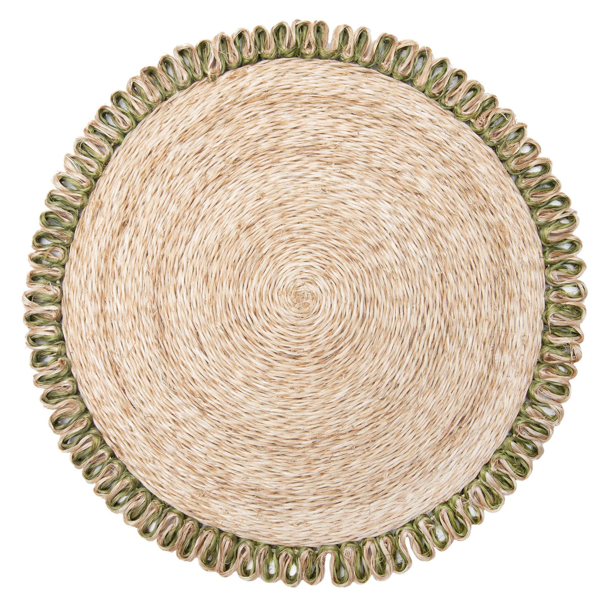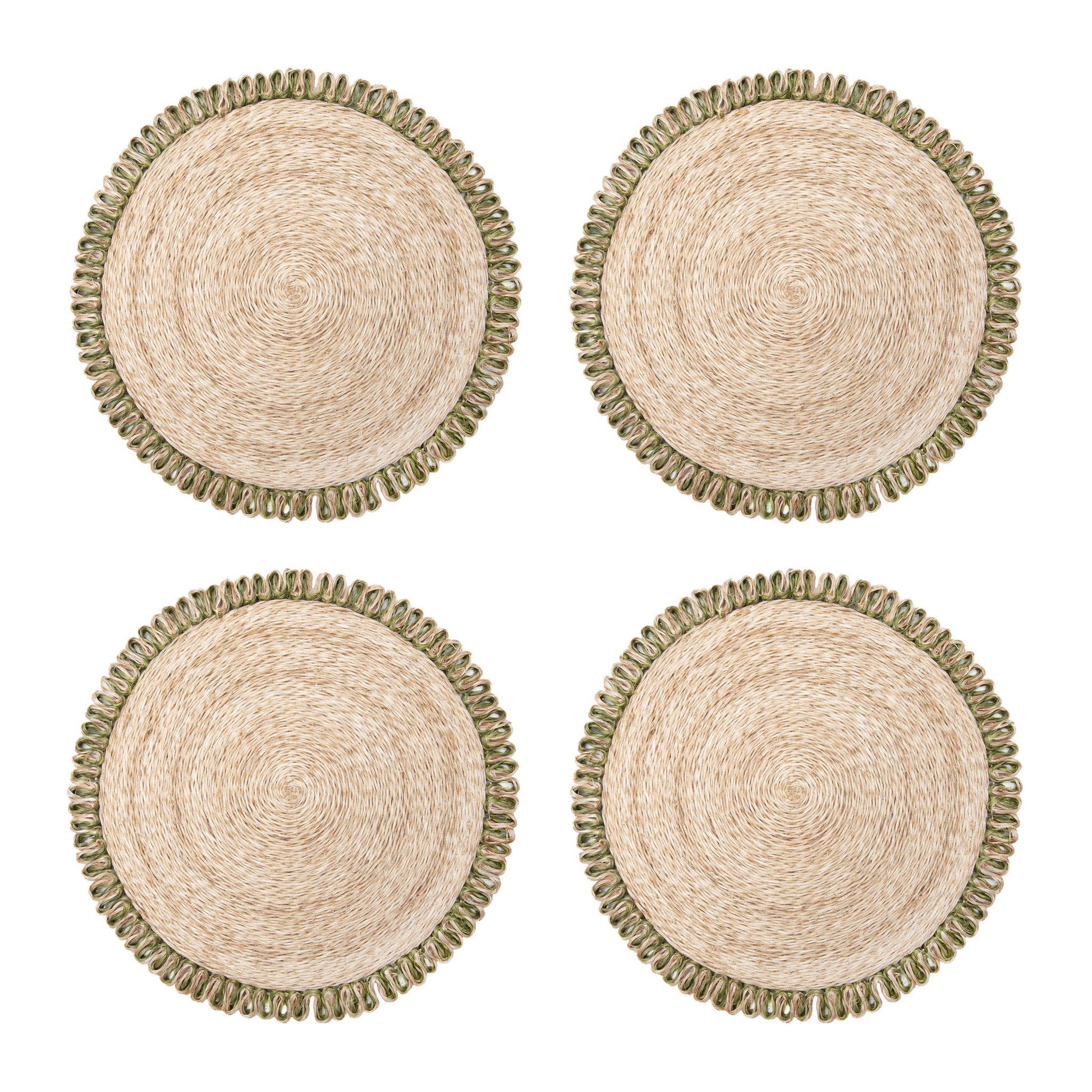 Loopy Abaca Natural & Olive Green 15" Round - Set of 4