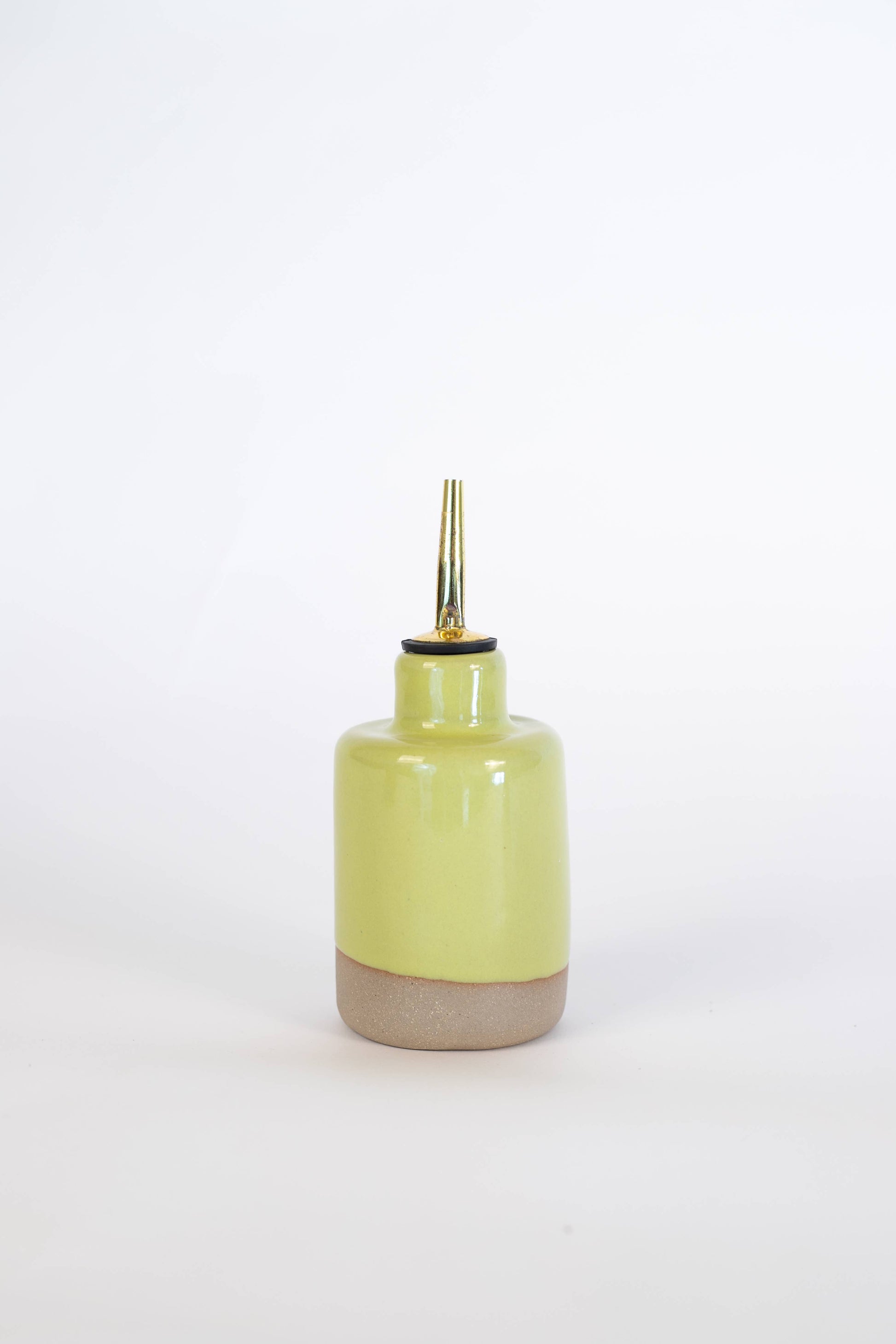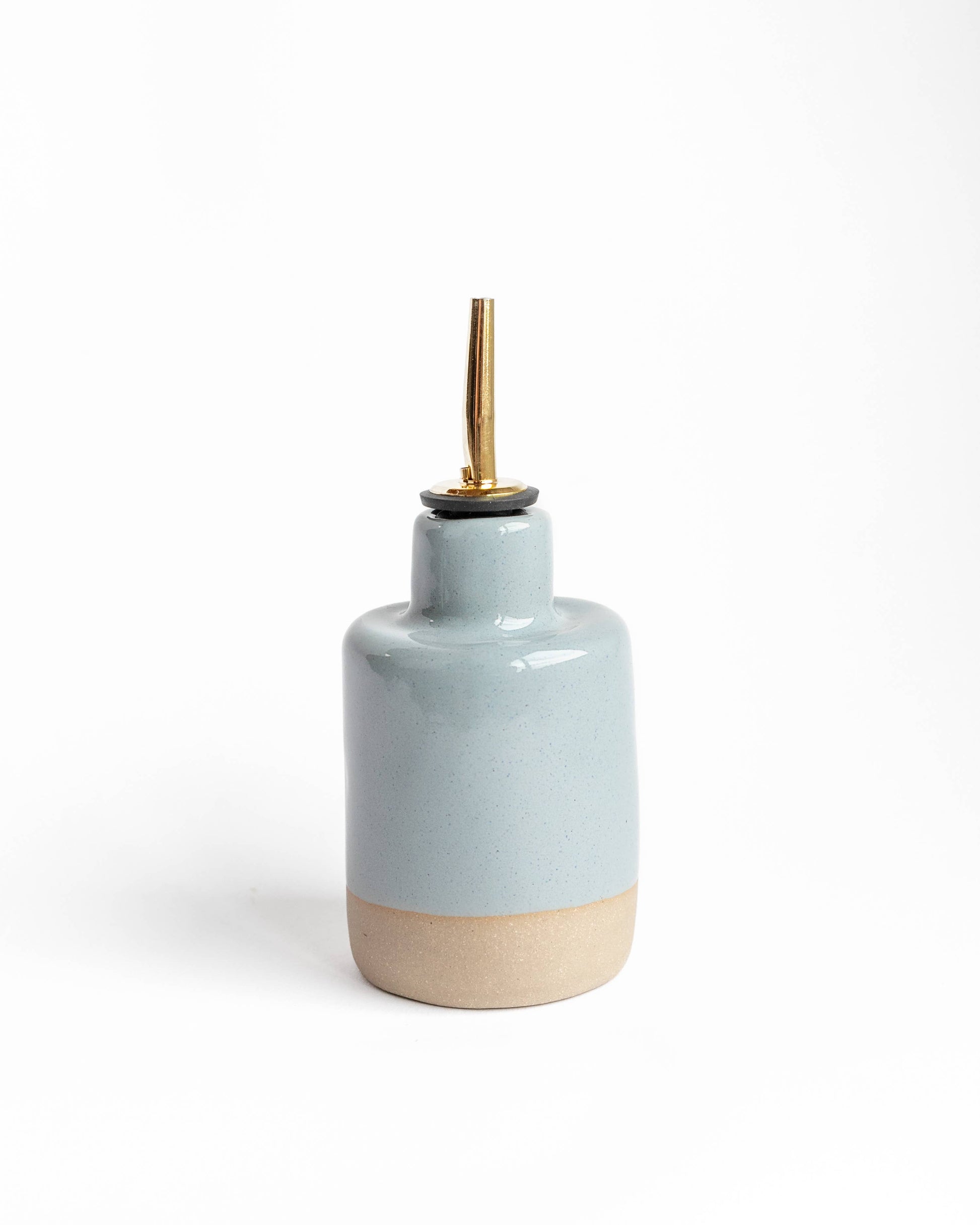 Drizzle your favorite oils or vinegars with ease using our Handmade Small Oil Dispenser. Designed for convenience, this oil cruet is the perfect way to serve oils and vinegars while keeping your countertops clean and your kitchen organized. Its sleek, compact design fits easily into any kitchen space, making it both practical and beautiful. Our food-safe and lead-free clay/glaze shields your oil from light, preventing oxidation and preserving its fresh flavor. Microwave and dishwasher safe. Dimensions (please expect slight variations among size/shape): Diameter - 3in Height - 7in (with spout) Volume - 10-12oz